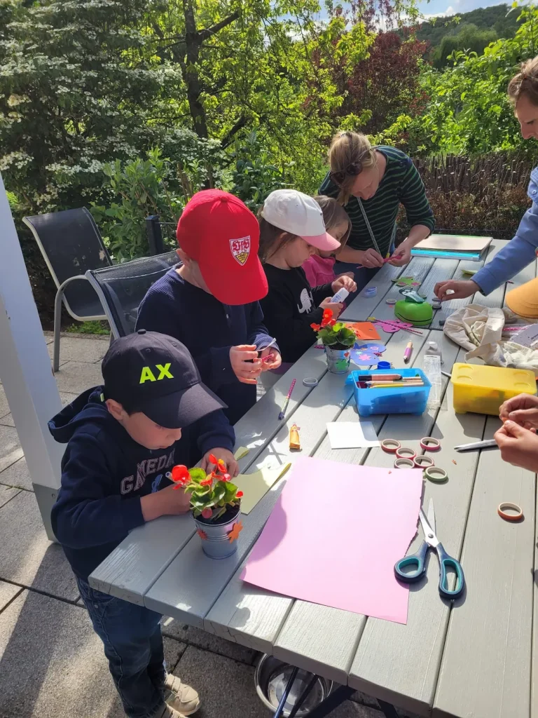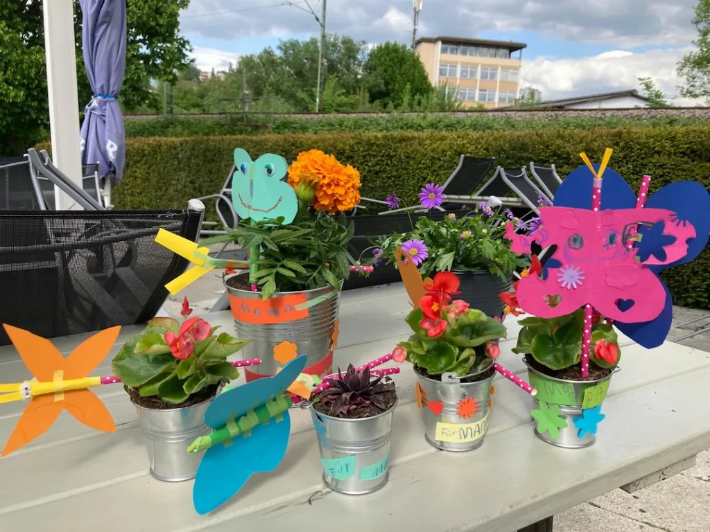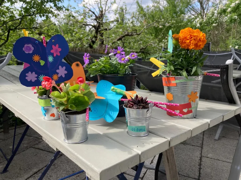 In der Woche vor dem Muttertag wurde bei uns nicht nur gegärtnert, sondern auch ganz fleißig gebastelt, gepflanzt und gestaltet. Im Rahmen unseres Projekts „Gärtnern mit Kindern“ haben die kleinen Hände mit großer Begeisterung: