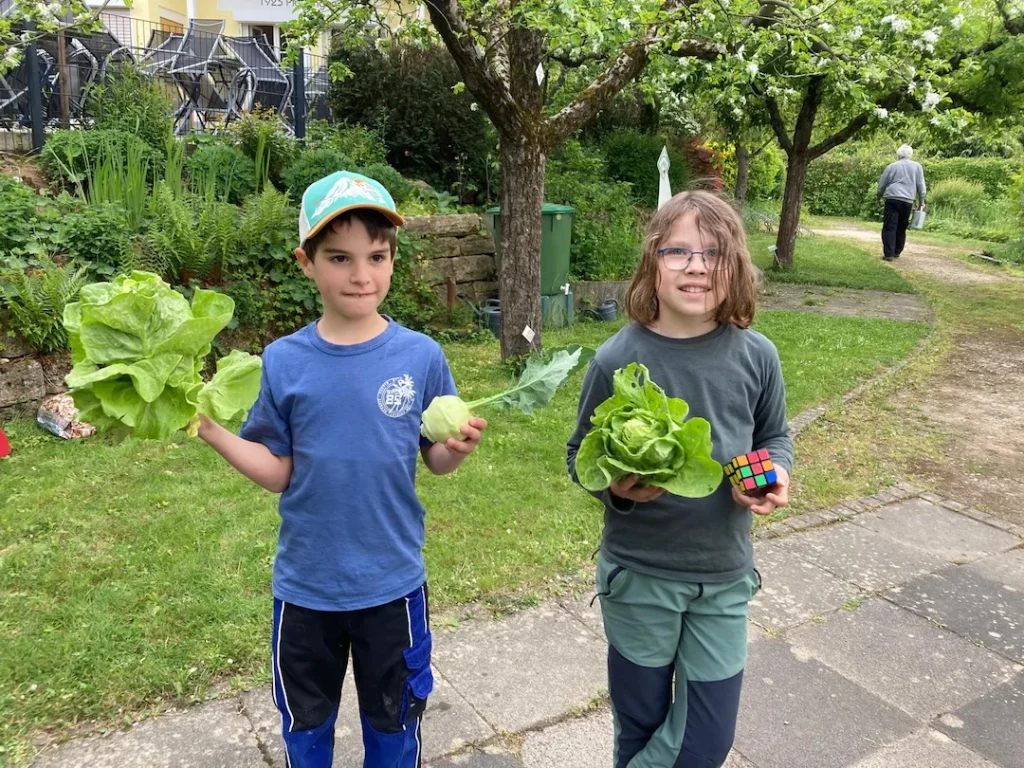 🥬 Es wurde fleißig gegossen, geerntet (ein bisschen Salat musste mit) und natürlich geschaut, wie gut alles wächst und gedeiht.