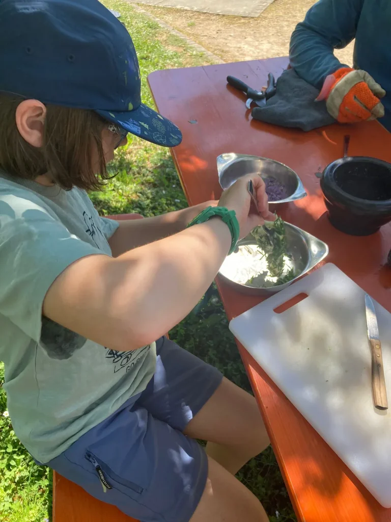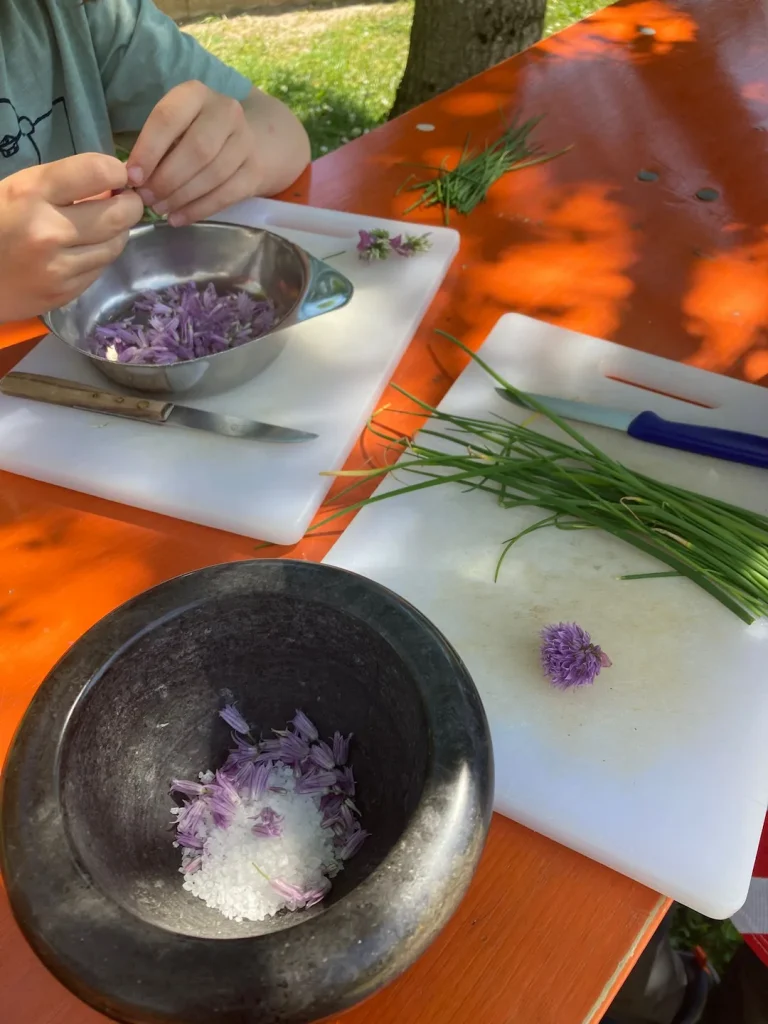 Besonders spannend: Die Kinder haben die Blüten mit Salz im Mörser verarbeitet – mit viel Freude, Feingefühl und erstaunlich viel Ausdauer! 💪🌸