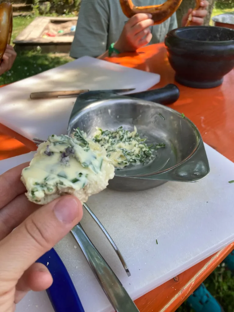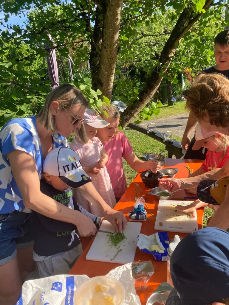 Im Rahmen unseres Projekts „Gärtnern mit Kindern“ haben die kleinen Gärtner:innen selbst Schnittlauch geerntet, geschnitten und anschließend daraus Schnittlauchbutter und Schnittlauchblütensalz hergestellt. 💚