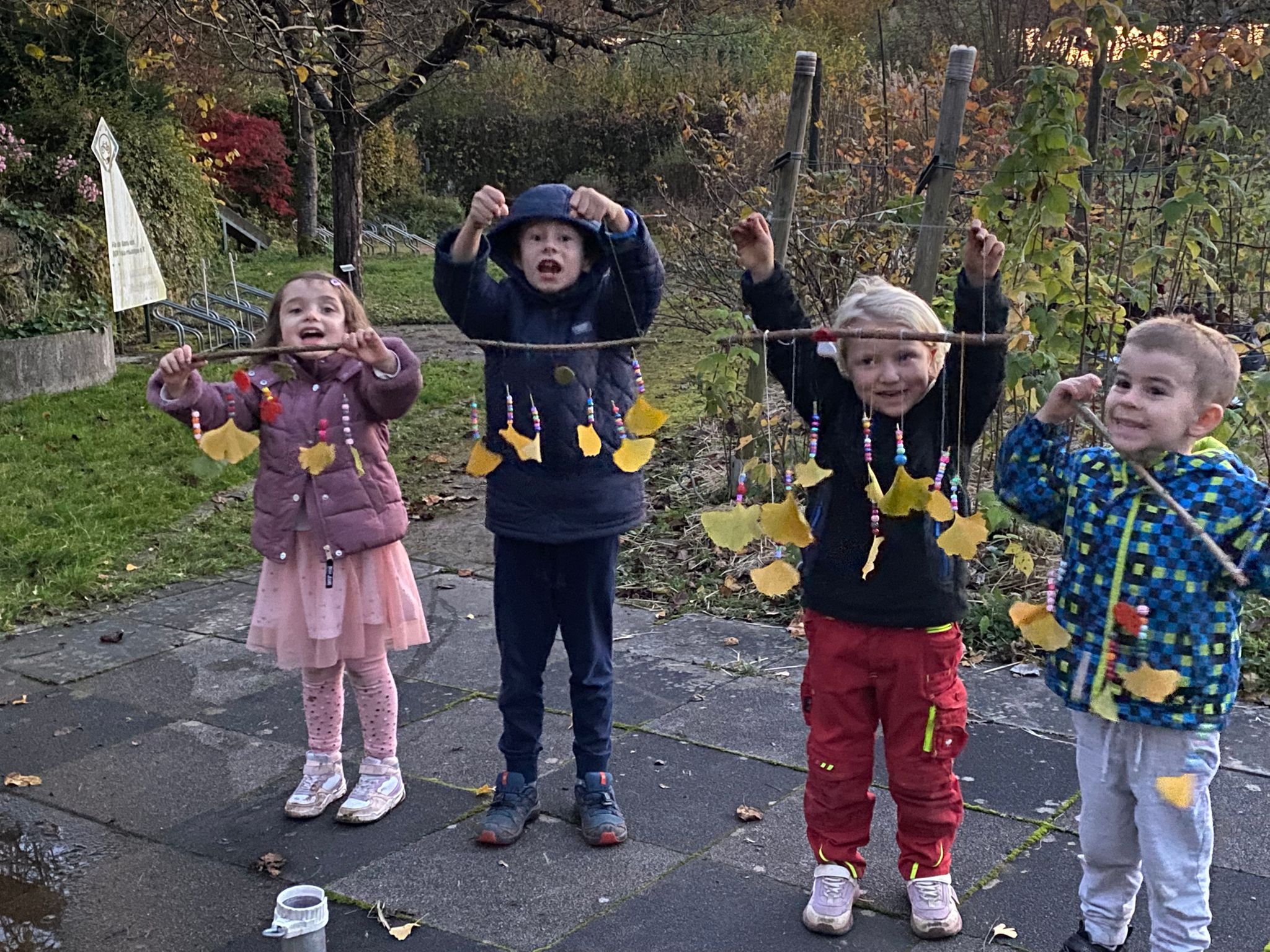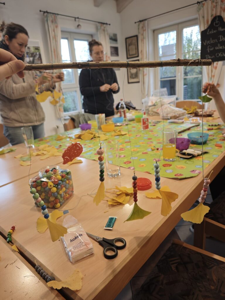 Natürlich haben wir die Gelegenheit genutzt und gemeinsam aus den Ginkgoblättern zauberhafte Windspiele gebastelt (siehe Foto). Mit Perlen, Draht und einem einfachen Zweig sind kleine Kunstwerke entstanden, die im Wind schaukeln und das warme Gelb der Blätter noch einmal richtig strahlen lassen. 🍁💛
